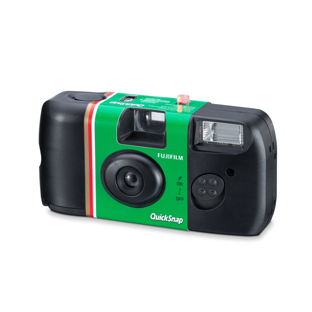 La Fujifilm QuickSnap es una cámara analógica descartable que viene lista para usar. Incluye film color Fujifilm y no requiere configuraciones ni experiencia previa. Una vez que se terminan las fotos, se revela el rollo para obtener las imágenes.